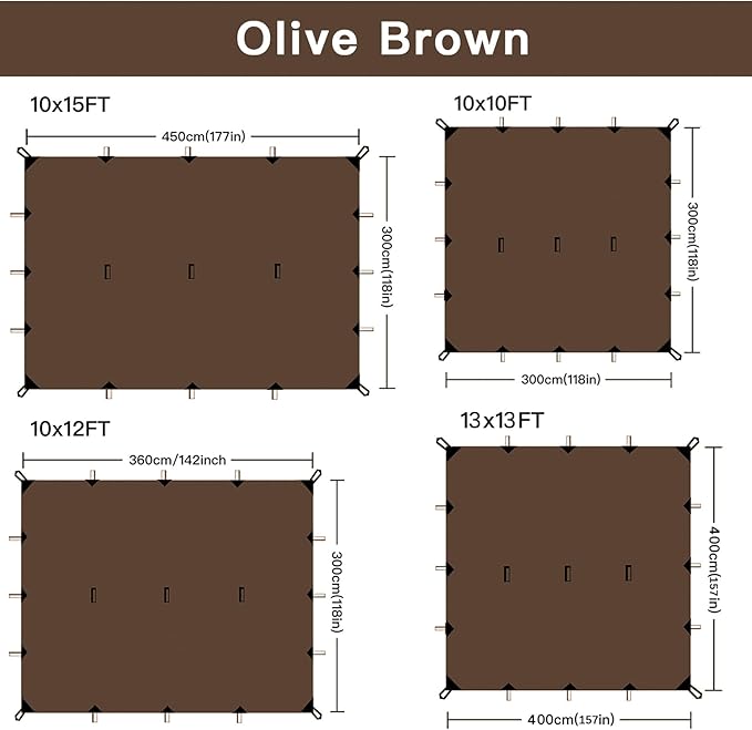 - . MULTI-FUNCTIONAL: The camping tarp rain fly can be widely used as survival tarp, hammock rain fly, outdoor kitchen cover, simple tent, tent footprint, picnic blanket, ground sheet , instant shade, etc