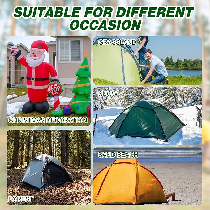 - Compatible Occasions: these tent stakes can be applied to fix your travel tents, camping tents, shelters, canopies, awnings, tarps, picnic mats, patios, gazebos, garden structures, patio structures, landscapes, backyards grounded, garden lights, Thanksgiving, Halloween pumpkin lights and streetlights, Christmas Santa Claus and snowman, summer inflatable toys or even to secure your dog leashes, they are quite useful camping travel tools, convenient and portable