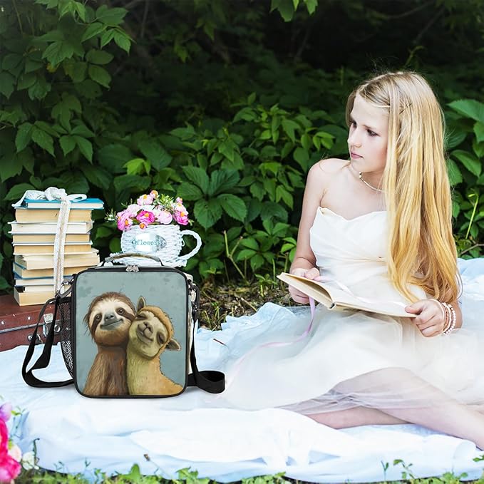 cfpolar Cute Llama and Sloth Lunch Box for Boys Girls, Insulated Lunch Bags for Kids Reusable Mini Cooler Lunch Tote Lunchbox Thermal Meal Tote Kit with Shoulder Strap for Work School Picnic
