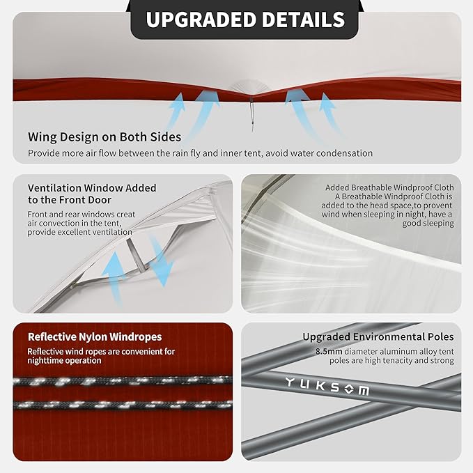 - 2024 NEW CLOUD UP PRO: The Cloud up Pro is the upgraded version of Cloud up 2 Person Tent; 1. A ventilation window is added above the front door, to provide more air flow in the tent, avoid water condensation; 2. The door is upgraded to be a larger and higher front door, with more space to put your camping gears and easy access to the tent.