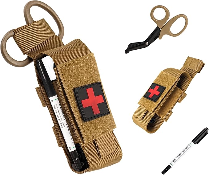 - 【High Quality Tourniquet Pouch Kit】The tourniquet kit includes 3 products: molle tourniquet pouch holder, trauma scissor and marker pen. It is not only suitable for use at home, but also for use outdoors in case of emergencies, which can meet your multiple needs.