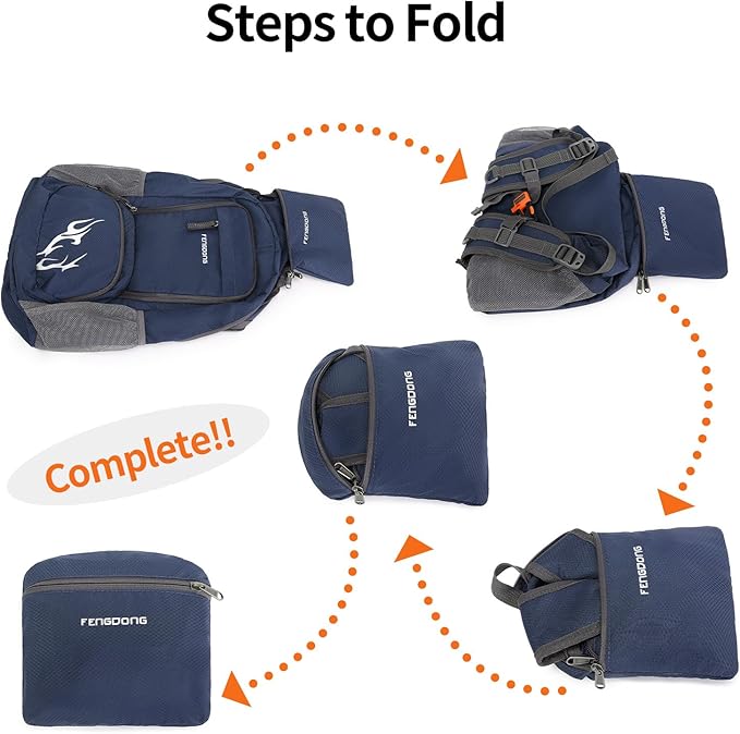 - 【Collapsible & Comfortable】It can easily fold into its own pocket for storage,and unfold it when you need it. A must have for every trip.Breathable mesh shoulder straps with plentiful sponge padding help relieve the stress from your shoulder. A must have for sports , hiking, camping and traveling.