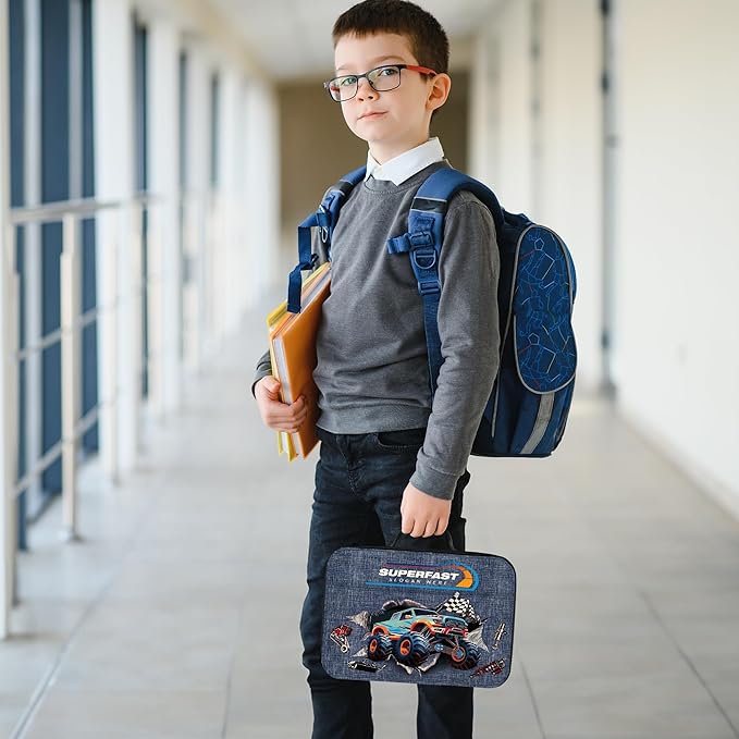 Clastyle 3D Insulated Kids Lunch Bag Large Thermal Cooler Bag for Boy Picnic School Lunch Box Tote,Monster Truck