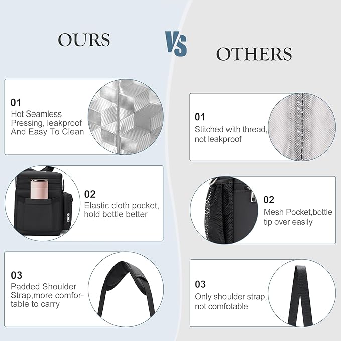 - REMOVABLE BOTTOM PANEL: The exterior of the bottom panel is wrapped with heat-insulating aluminum film, which can be placed into the bag when needed to keep the bag better stable and less likely to tip over.
