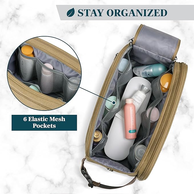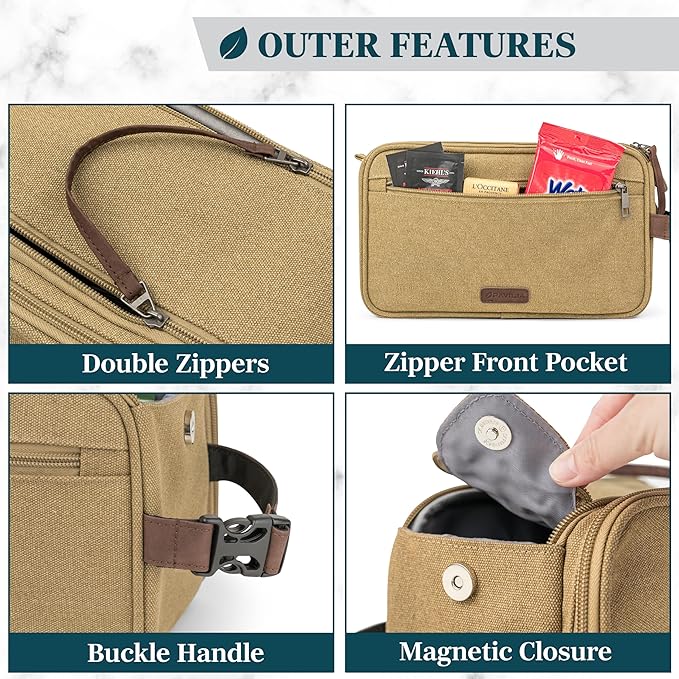 - TOILETRY BAG FOR MEN: Mens toiletry bag is more than just a dopp kit bag! This large-capacity canvas toiletry bag has a full-open front zipper pocket that includes elastic bands and multiple compartments to keep everything organized.