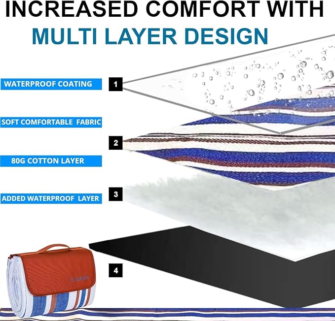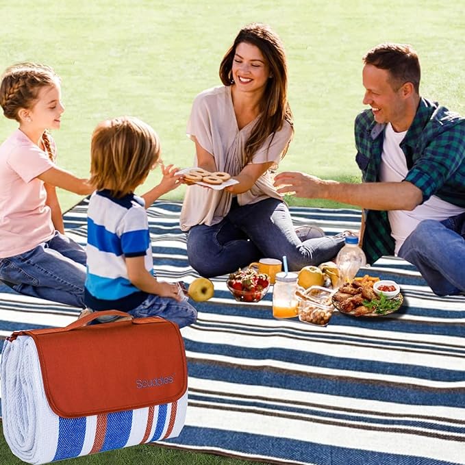 scuddles 80”x 80” Picnic Blanket Extra Large, Waterproof and Foldable Beach Blanket, 3-Layer Outdoor Blanket Fits Up to 6 Adults, for Camping, Park, Beach, Grass, Indoors Outdoors