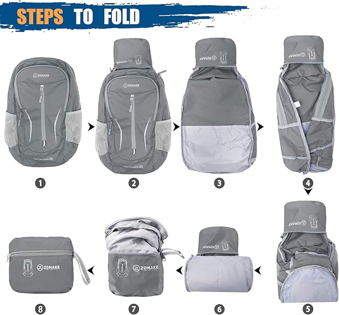 - HIGH-QUALITY MATERIALS: Our light foldable backpack is water resistance(note:not completely waterproof).We use high-tear nylon fabrics and use the latest double-layer wear-resistant process to reinforce the backpack suture.After high-quality materials and light foldable hiking backpacks produced by good craftsmanship,it can effectively protect the items in the backpack.The zipper made of two-way SBS metal and high-quality resin materials greatly reduces the trouble of being stuck in the zipper