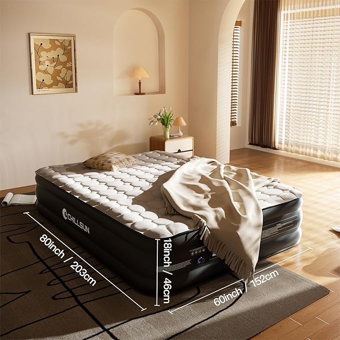 CHILLSUN Luxury Queen Air Mattress with Built in Pump,18" Raised Comfort Blow up Mattress,Dual Layer Mattress Topper Airbed, Durable Inflatable Mattress for Guests Home, Colchon Inflable 800lbs Max