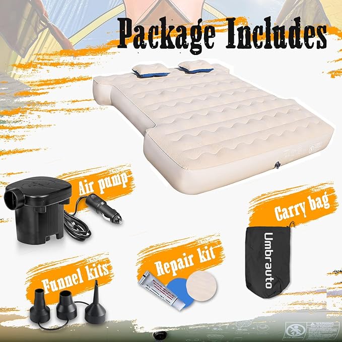 Umbrauto Air Mattress for 5.5-5.8ft Full Size Short Truck Bed, Flocking Surface Inflatable Airbed for Pickup Tent Camping, Sleeping Pad with Pump, Carry Bag