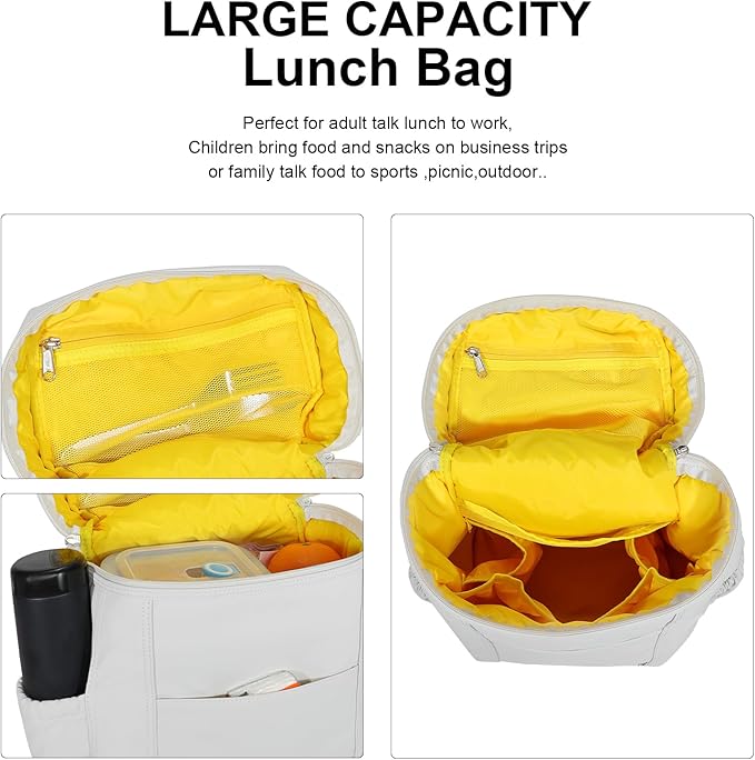 - Lightweight & Portable: This lunch bag is made of waterproof nylon outside, insulated lunch bag with adjustable long shoulder strap and top handle for easy carrying. The sturdy handles that're joined by tight stitching, making the lunch tote resistant, splash-proof. Even if you accidentally spill a drink on the adult lunch bag liner, simply wipe it with the cloth to clean the bag, saving you cleaning time.