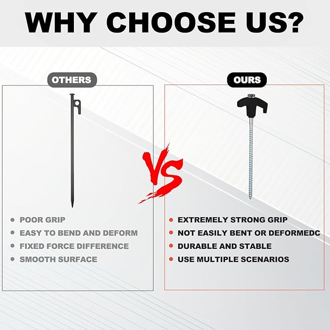 - Easy to install:Our tent stakes metal Setup faster,with the help of a cordless drill or impact driver, these easy-to-use stakes will secure your these stakes will provide you with a reliable anchor point making them a versatile and essential addition to your camping.