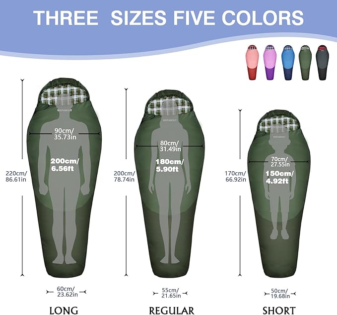 - Three sizes: Available in three sizes for adults, teenagers and children, suitable for users of different ages, convenient one-stop shopping. The sleeping bag comes with a compression bag for easy rolling and carrying. Whether you're camping, traveling, exploring the outdoors, or spending the night indoors, sleeping bags provide a comfortable sleeping environment.