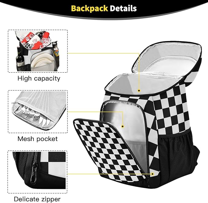 • ✔ Large Capacity Coolers Backpack: 30 Cans/30L, 16.9" x 13" x 7.9", Weight: 1.3 LB. Maximum capacity 36 cans (330ml), Roomy enough to store food, beers, tall beverages, snacks, and other necessities. Perfect picnic backpack for outdoor activities.