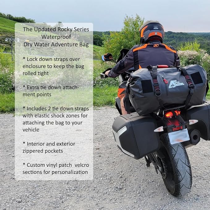 - [ULTIMATE TOURING COMPANION] This black waterproof drybag/duffel bag is perfect for motorcycle touring through all weather conditions. It can be easily secured with straps on the back of your motorcycle, ensuring it stays in place at high speeds and on rough terrain. Quick-detach design allows you to effortlessly remove and carry the bag when needed.