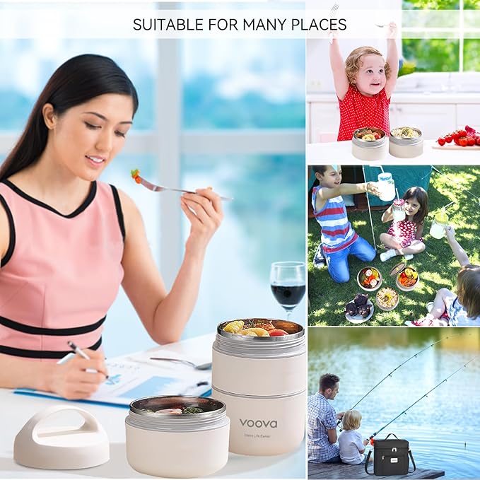 - Food-grade Material: The inner lining of the insulated food container is made of durable stainless steel 304 (including spoon and fork), and the shell & lid are made of food-grade PP plastic, which is non-rusting, odorless, BPA-free, and completly safe and healthy material. This simple modern lunch box is safe for everybody, perfect for adults' meals on the go as work, exercising, camping, and traveling.