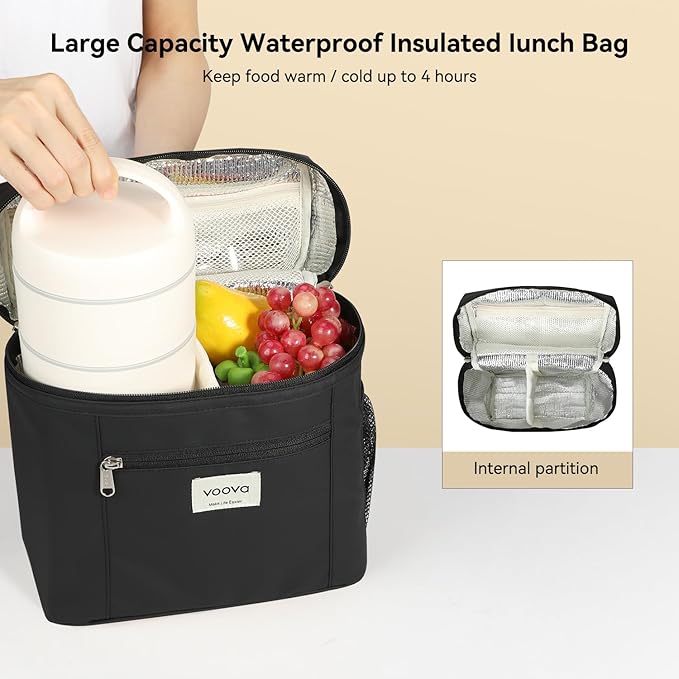 - Includes Lunch Bag & Cutlery : Our lunch box containers comes with a large capacity insulated lunch bag and sturdy stainless steel 304 cutlery. The insulated cooler bag is made of high-quality insulation material, which can effectively maintain the warm or cold state of the food in the lunch box for 3-4 hours. The black lunch bag has a large space, allowing you to put some fruits or drinks inside, and the small pocket outside can also hold small items such as keys and tissues.