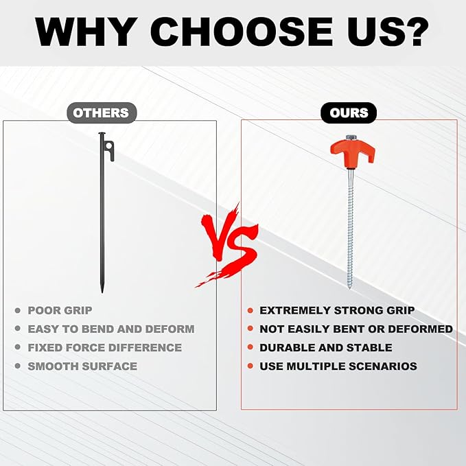 - Versatile usage:Whether you want to secure your tent, awning, billboard, shelter, gazebo, or even secure your pet leash, Christmas decorations, New Year's decorations, landscape trim, or outdoor decoration the canopy stakes can help you out.