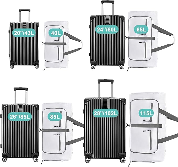 - Foldable and Spacious travel bag:The travel organizer bag can be folded into a really small size taking up so little space but opens up to have about 115L capacity of travel bags to use as a luggage bag in case that your suitcase swells. This travel duffel bag is designed to work best with bag packing cubes - to give you an organized lightweight travel experience.