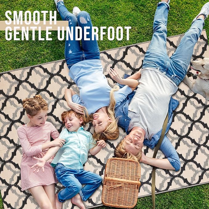 - Gentle Underfoot & Relaxing: The woven plastic straws create a soft, comfortable surface, perfect for barefoot walking and relaxation. Whether you're lounging on your patio or enjoying a picnic, this outdoor carpet for patio enhances your outdoor experience.