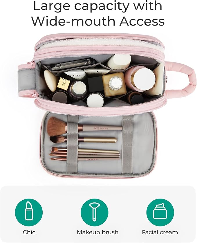 - ๐๐จ๐ฎ๐๐ฅ๐ ๐ณ๐ข๐ฉ๐ฉ๐๐ซ ๐๐๐ฌ๐ข๐ ๐ง: Cosmetic bag features dual zippered opening, making it quickly reach into the main compartment. Simply pull on the connected zip puller for full exposure