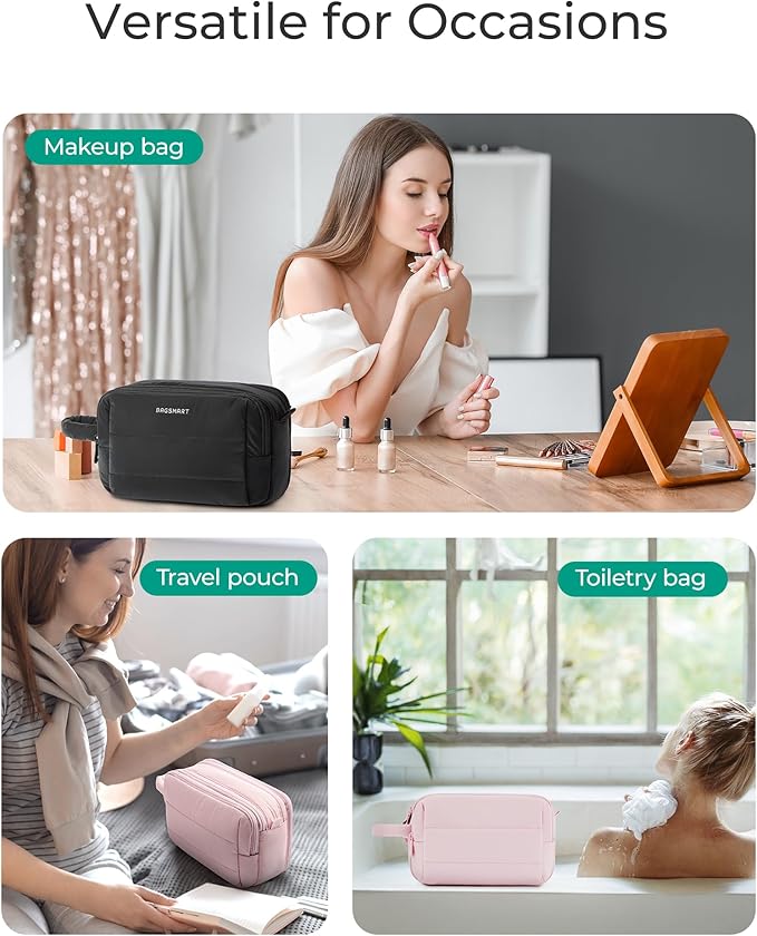 - ๐๐ฎ๐๐๐ฒ ๐๐๐ญ๐๐ซ๐ข๐๐ฅ๐ฌ: Travel toiletry bag is made of waterproof puffy fabric. Super soft, lightweight nylon fabric provides all-day carry comfort