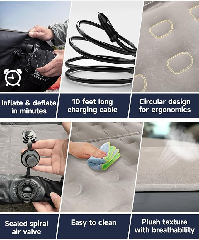 Heavy-Duty Durability SUV Air Mattress for Car Bed Camping: Soft Flocked Top, Leakproof PVC Core, Extra Thick 210T Bottom, Quick Set-Up w/Electric Pump, Built to Last for Van and Trunk Airbeds