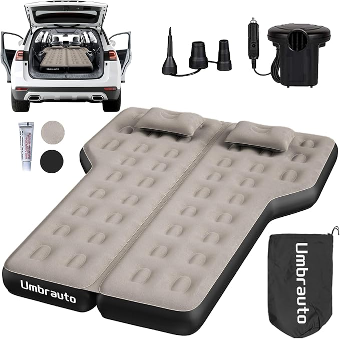 - Abundant Accessories: The Umbrauto car camping mattress includes an electric car air pump, a 3-meter power cable for connecting to the car's cigarette lighter socket, several handy repair patches, and a convenient storage bag.