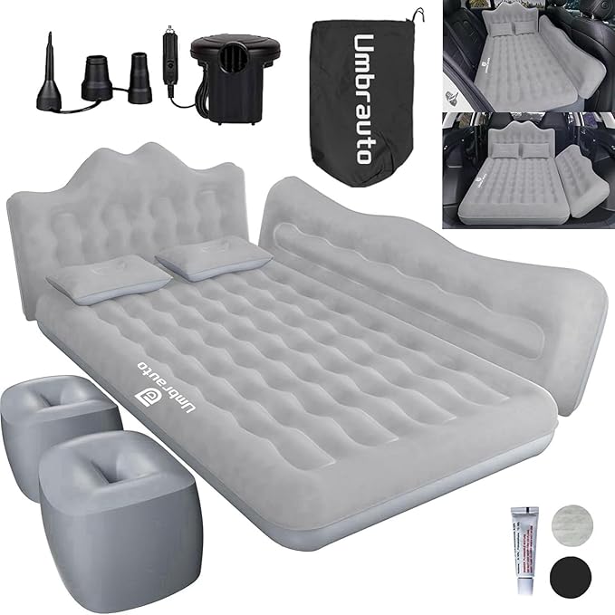 Umbrauto Truck Air Mattress Back Seat| Inflatable Car Camping Mattress Bed for Back Seat, SUV Blow Up Rear Seat Sleeping AirBed for Van Travel with Pump & Pillows