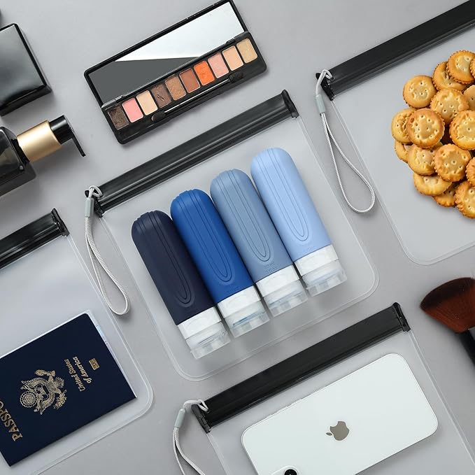 - Triple Sealed Leakproof:The airport security liquids bags has triple ziplock closure to prevent spilling into other items. It made of waterproof material EVA, soft and easy to clean