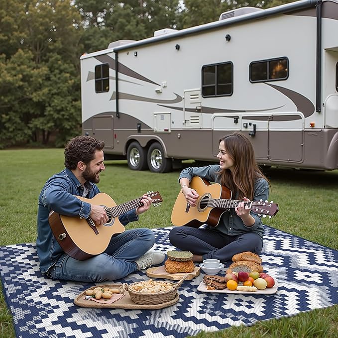 - UV & Fade Resistant: Professional UV coating can resist high temperature, fading and other sun damage, ideal for placements near sun-exposed patio tables or under shaded patio umbrellas and suitable for long-lasting use even in stormy/windy/snowy weather. We suggest that you don't keep rv rugs in direct sunlight for a long time, using it in the shade. Note: colors may be different from image because of the environment or lights