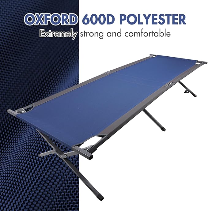 - STURDY CONSTRUCTION: Built for the outdoors, this camping bed is constructed with a powder-coated steel frame that resists rust, corrosion, and abrasion, and an oxford 600D polyester canvas. It's made to withstand the elements, making it a reliable choice for your outdoor adventures.