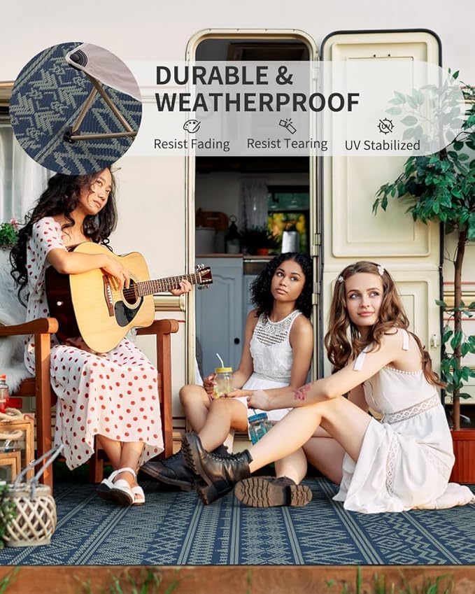 MontVoo Outdoor Rug Carpet Waterproof 6x9 Outdoor Patio Rug Mat Reverisble Plastic Straw Outdoor Rug for RV Camping Picnic Beach Balcony Boho Blue Green