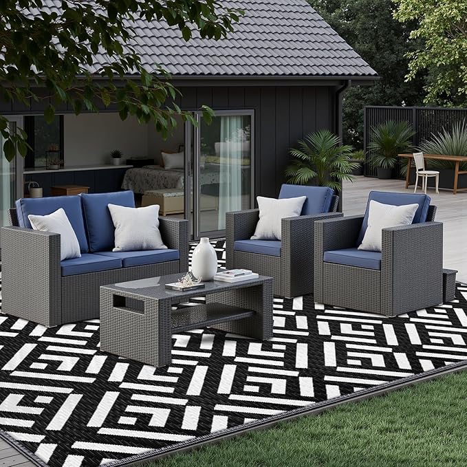 - Waterproof & Quick Dry: Easy to clean, wipe with wet cloth and let them dry in the sun. This RV camping mat made from stain-resistant & UV-resistant materials, so you can keep it outdoors all year round without worry about tearing or fading. Woven by plastic straws, feels soft and welcoming underneath your toes and knees, the outdoor rug is a great RV camping rug never damage grass.