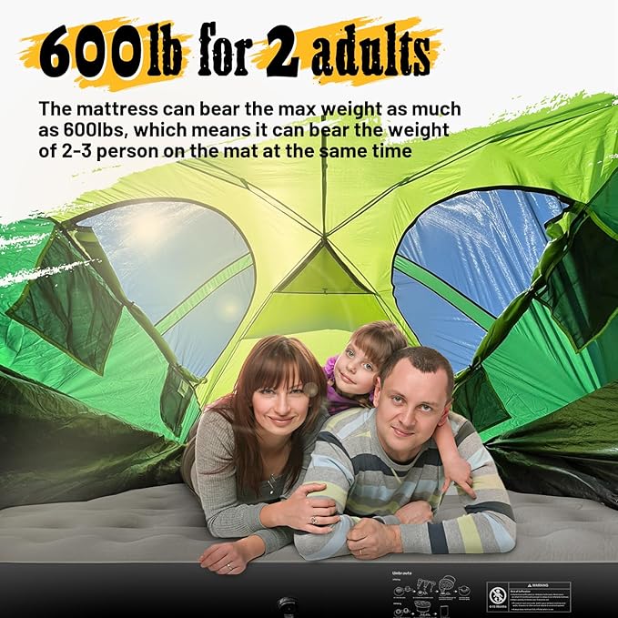 - 【Heavy-Duty Weight Capacity】With a whopping 600-pound weight capacity, this inflatable air mattress can easily accommodate 2-3 people simultaneously for a comfortable and cozy sleeping experience.