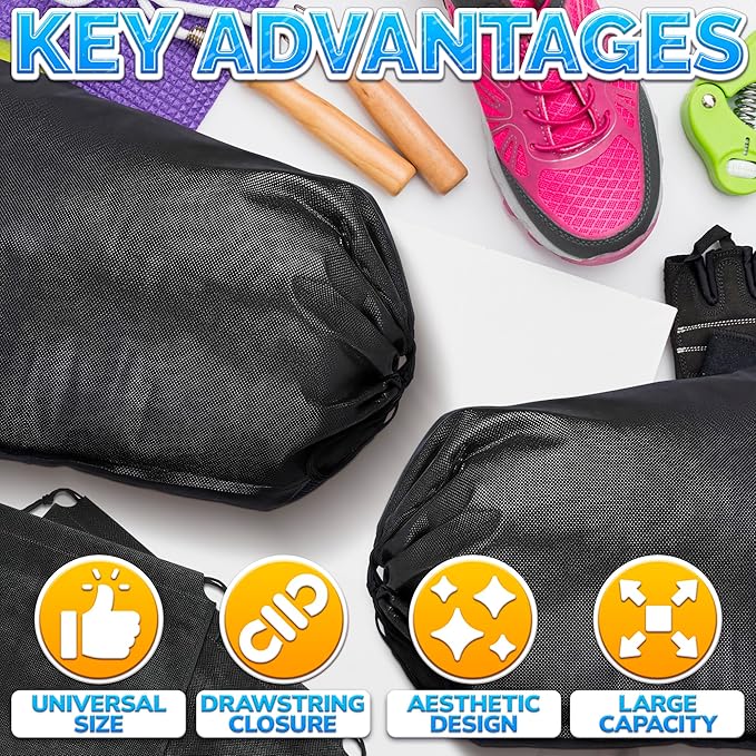 - Premium Quality Cinch Bags Drawstring: Made of premium-quality non-woven fabric material, shoe bags for traveling are long-lasting, no smell, stain-resistant, foldable, breathable, and lightweight