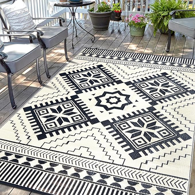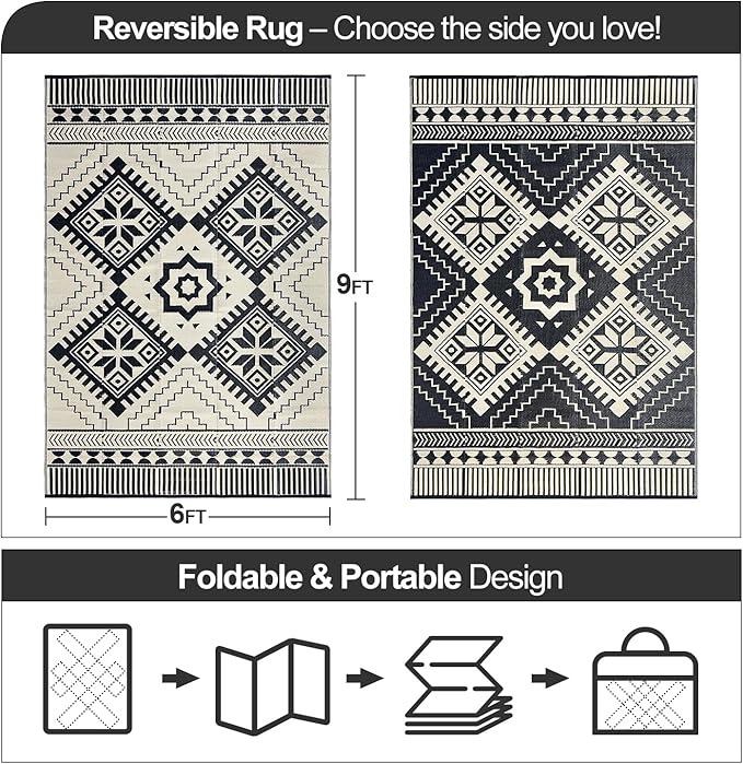 - Reversible & Unique Pattern: Enjoy two unique geometric patterns in one reversible rug design, ideal for patios, camping trips, or RVs. Enhance your space with versatile boho charm;