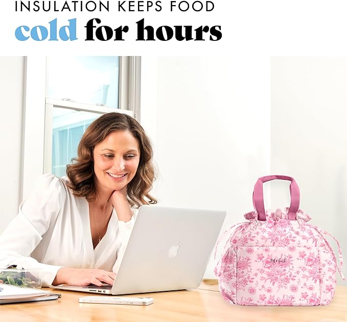 Fit & Fresh Lunch Bag For Women, Insulated Womens Lunch Bag For Work, Stain-Resistant Large Lunch Box For Women With Containers, Cinch Closure Cromwell Bag, Pink FloralToile