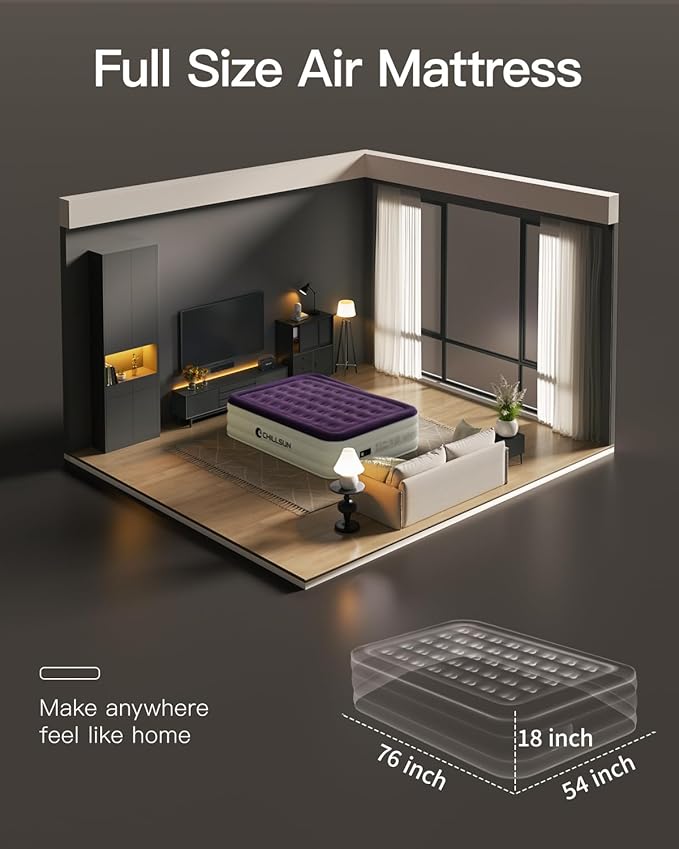 CHILLSUN Air Mattress Full with Built in Pump, 18" Raised Comfort Blow up Mattress, Inflatable Mattress colchon inflable, Upgraded Flocked Top Air Bed with Storage Bag for Home, Camping & Guests
