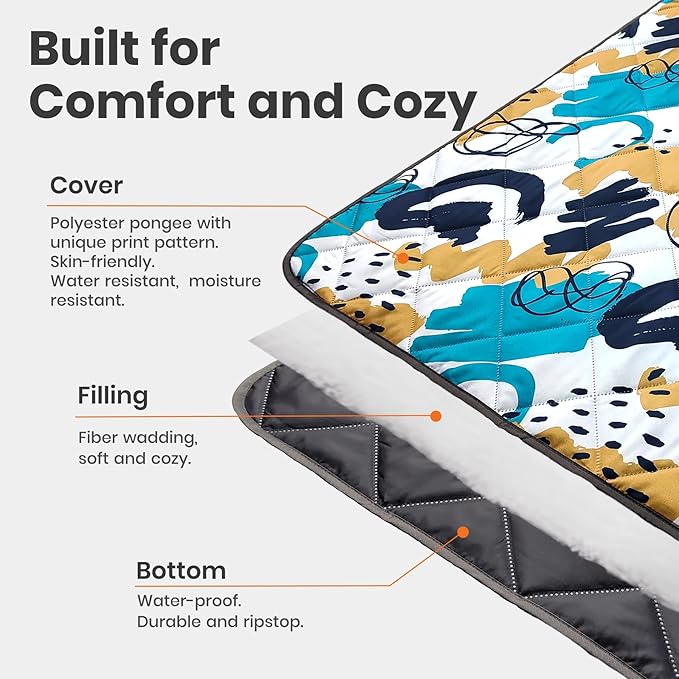 - DURABLE & COMFORTABLE - This quality blanket is designed to long-lasting with a ripstop top and back shell, which is durable and lightweight. The middle layer of fiber wadding provides extra comfort and volume. This 3-layer structure ensures a comfort of cushion and moisture resistance, keeping you stay dry and comfortable.