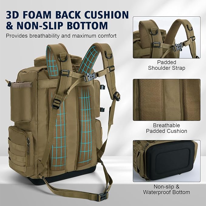 • EVA Backpack Bottom: Excellent durability and waterproof performance, effectively protecting the contents of the bag from moisture. Tackle box backpack is lightweight and strong, increasing the stability of the bottom of the bag, while having good impact resistance, which can reduce the risk of damage to the items. EVA material is easy to clean and has a smooth surface, which can keep the bottom of the fishing tackle bag tidy, making it an ideal bottom material for fishing bags