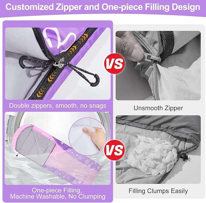 - Unique Design: Sleeping bags for adults, comes with a custom-printed pattern, bright colors, the smooth double zippers won't snag; Bottom zipper design, breathable, allowing your feet to move freely, and you can fully unzip the bottom to use it as a mat or blanket