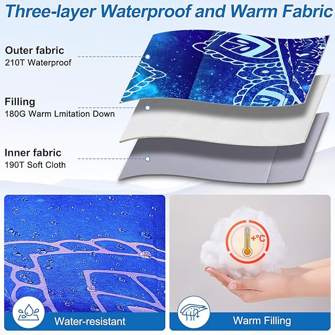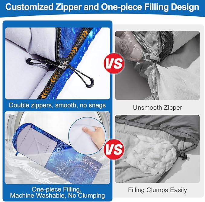 - Unique Design: Sleeping bags for adults, comes with a custom-printed pattern, bright colors, the smooth double zippers won't snag; Bottom zipper design, breathable, allowing your feet to move freely, and you can fully unzip the bottom to use it as a mat or blanket