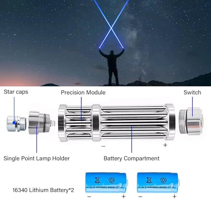 - Powerful Blue Light: The flashlight provide a powerful blue light that can reach 1500m. Note: not a toy for childrens.