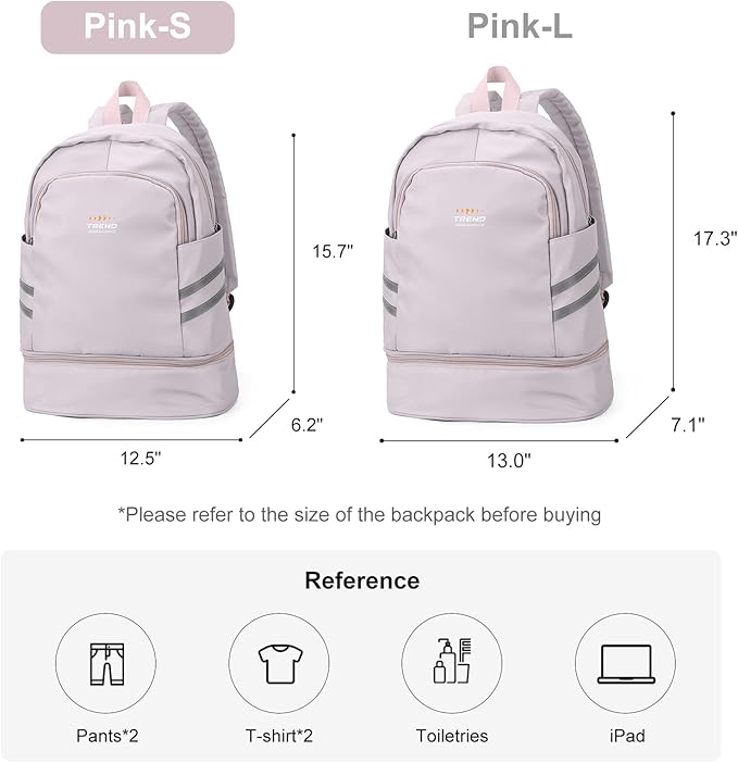 - WET POCKET: The wet pocket can hold wet items, such as toiletries, towels, swimming suits, etc., which is convenient for you to use when you are on a business trip or shower after exercise, and avoids getting wet in other parts of the backpack