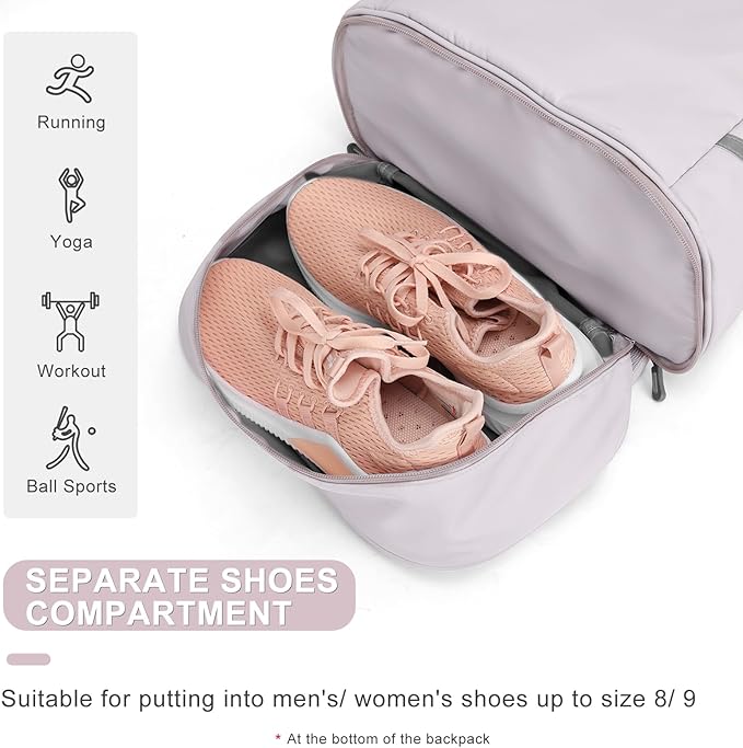 - MULTIFUNCTIONAL STORAGE SPACE: About 20L of storage space. This workout backpack can store 3-5 tops and pants, as well as iPad, wallet and other valuables. It is a great gym bag for women