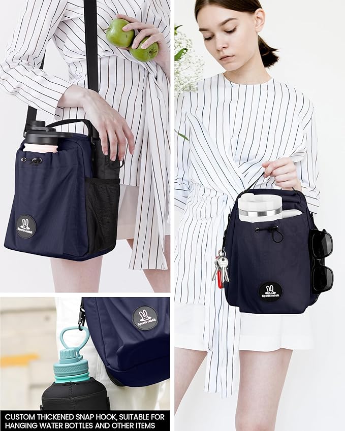 - Large Capacity & Smart Storage:With dimensions of 9 x 9 x 10.5 inches, the spacious main compartment fits three to four food storage containers. The front drawstring pocket accommodates most popular water bottle brands and sizes with handles or straight designs. Side mesh pockets and an interior net compartment keep utensils, keys, and essentials organized.