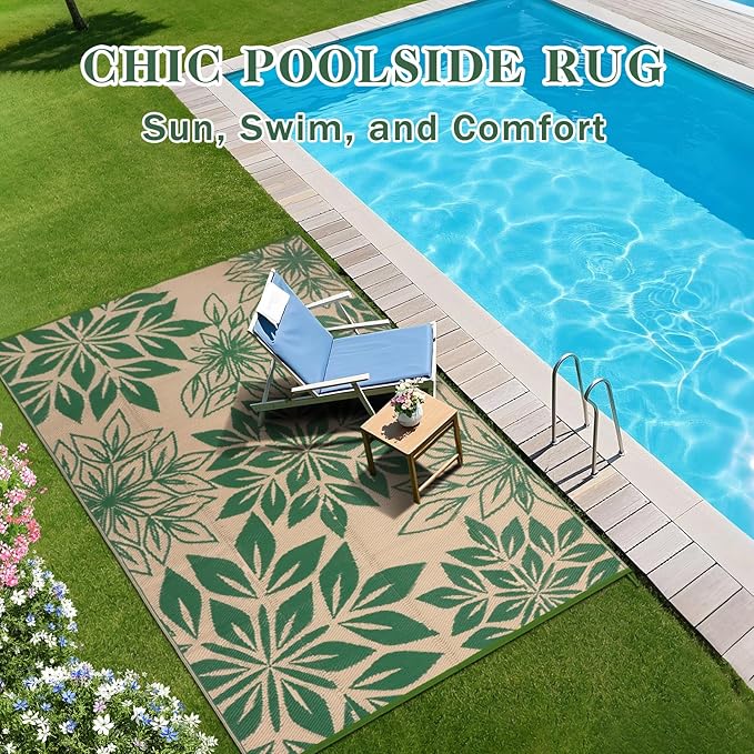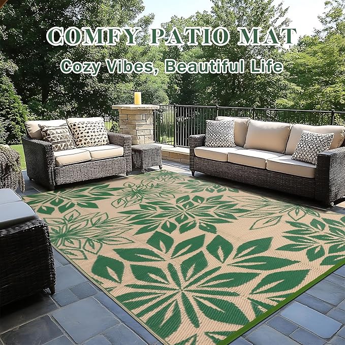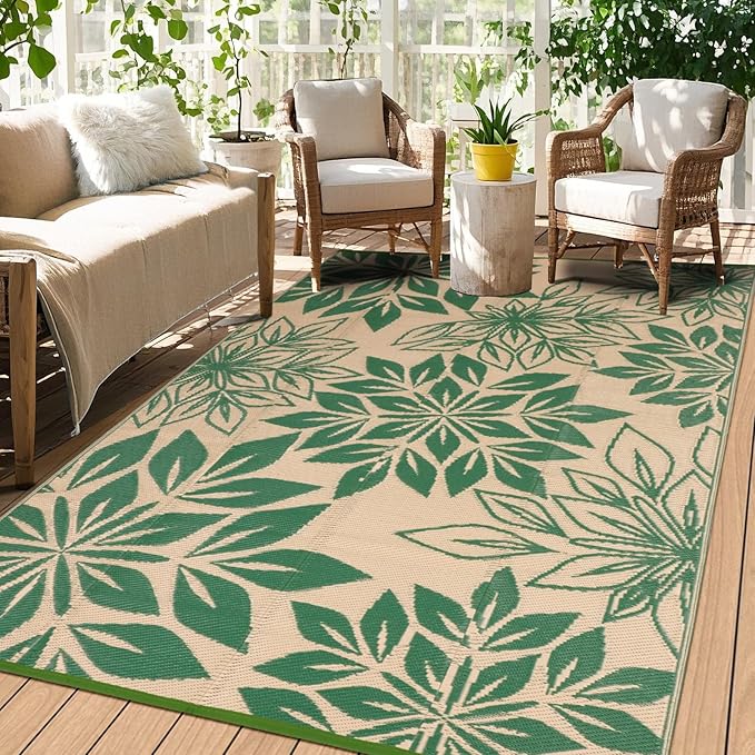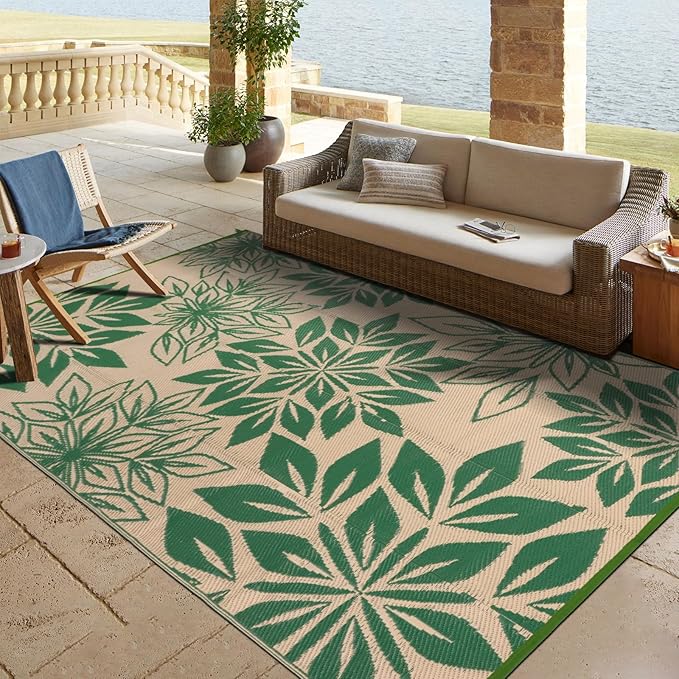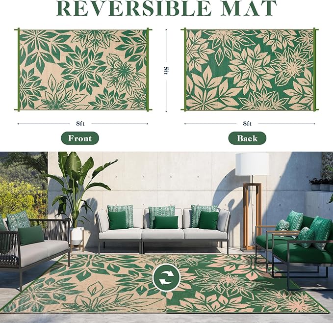 - ☀️WATER&UV-RESISTANCE: Our outdoor rugs 5x8ft are crafted from high-quality UV-resistant plastic straw materials, effectively preventing fading from prolonged sun exposure. The deck mat also boasts excellent water resistance, keeping it safe from rain, while ensuring long-lasting outdoor use