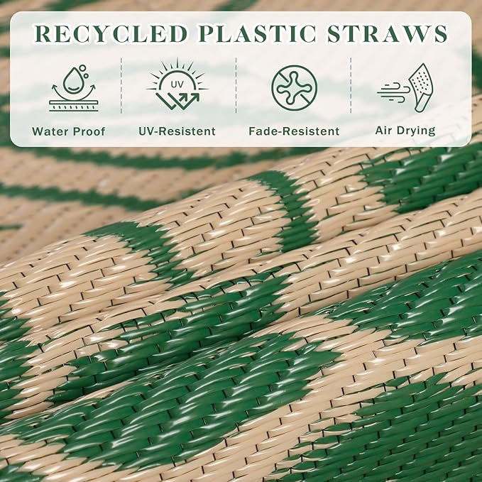 - ♻️ECO-FRIENDLY MATERIALS: We are committed to sustainability. All of our outdoor carpets are made from recyclable plastic straw materials, which are durable, breathable, soft underfoot and help reduce environmental impact. Its production process ensures high quality while aligning with eco-conscious practices