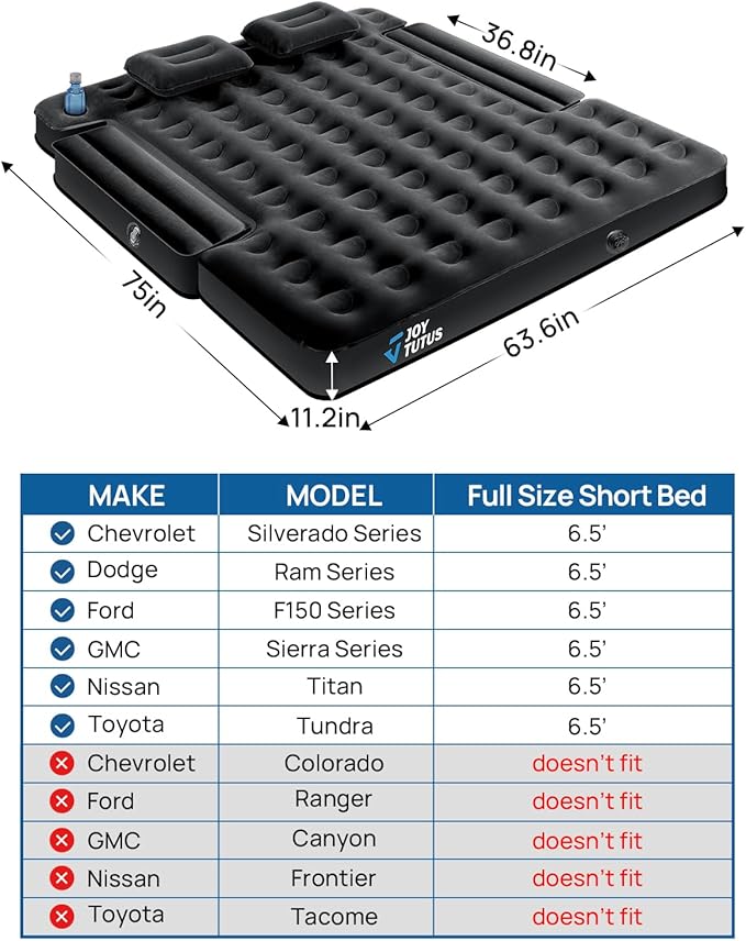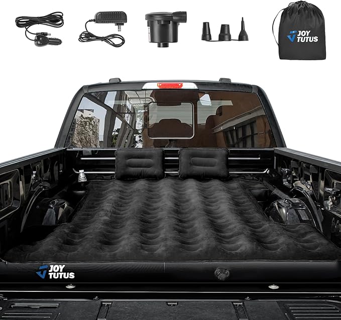 JOYTUTUS Truck Bed Air Mattress for 6.4-6.7Ft, Full Size Regular Beds for Pickup Outdoor Camping, Truck Tent Accessories with Carry Bag & Cup Holder & Cavity Design, Black