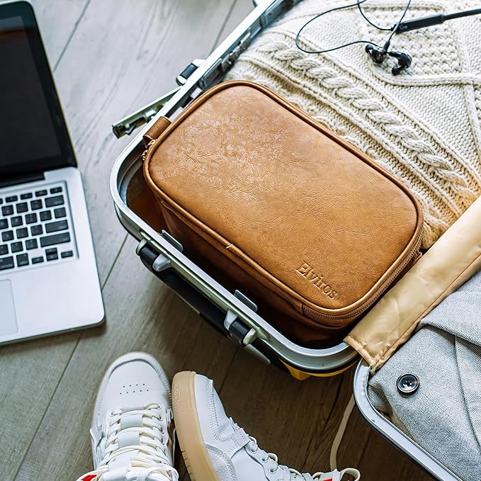 Elviros Toiletry Bag for Men, Large Travel Shaving Dopp Kit Water-resistant Bathroom Toiletries Organizer PU Leather Cosmetic Bags